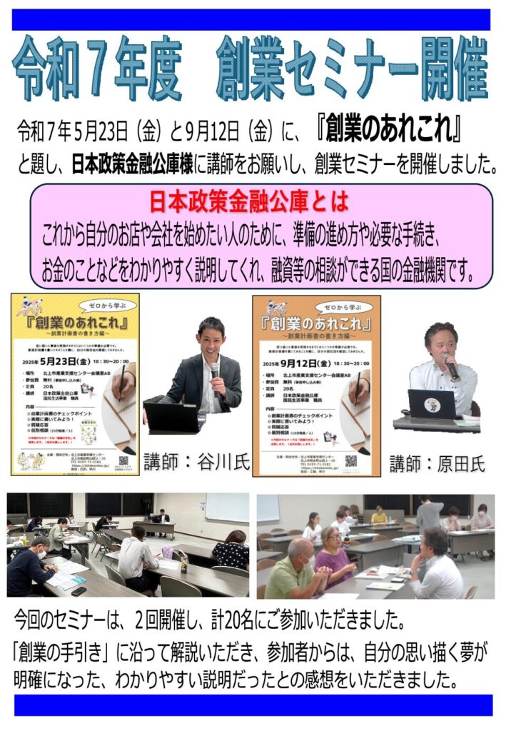 令和7年度創業セミナー『創業のあれこれ』を開催しました。